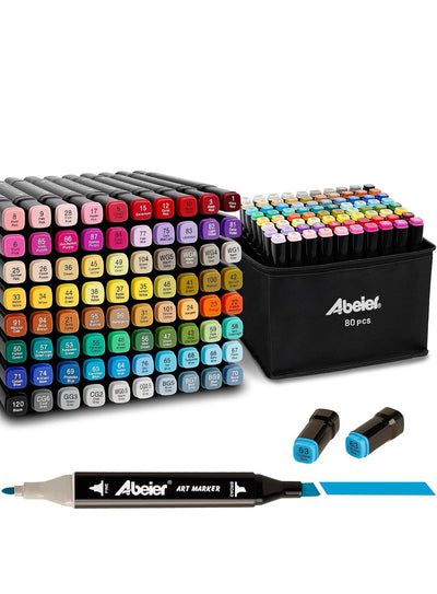 80+1 Colori Pennarelli Punta Marcatori,doppia punta artistici Pennello Marker,ad alcool Pennarelli artistici Penna artistica per Artisti Adulti Colorazione e Illustrazione