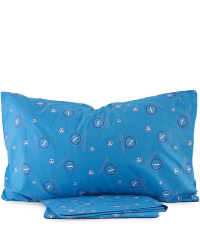 Lenzuola SSC Napoli completo Ufficiale, per letto Singolo con scudetto AZZURRO