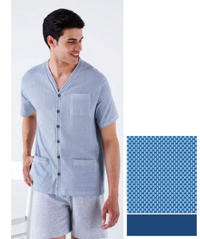 Pigiama uomo con giacca aperta in jersey di cotone fantasia cravatta a maniche corte