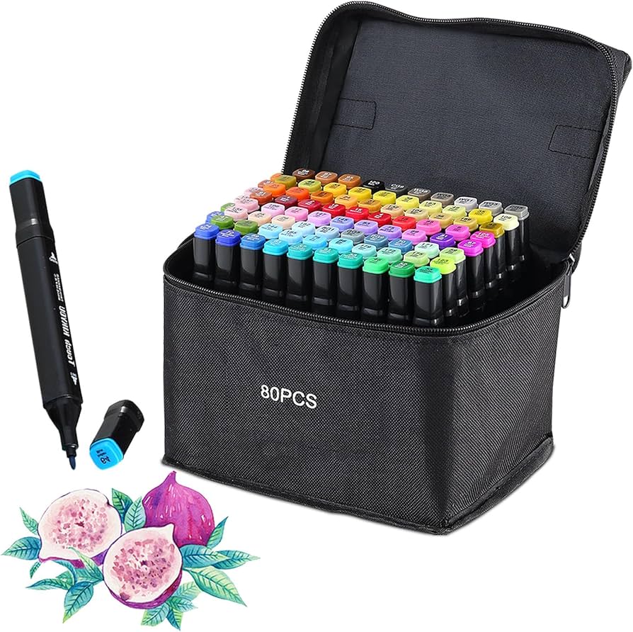ABEIER 80 + 1 Colours Markers Tip Markers, Double-Ended Art Brush Marker, Alcohol Marker Art Pens for Adult Artists Coloring and Illustration