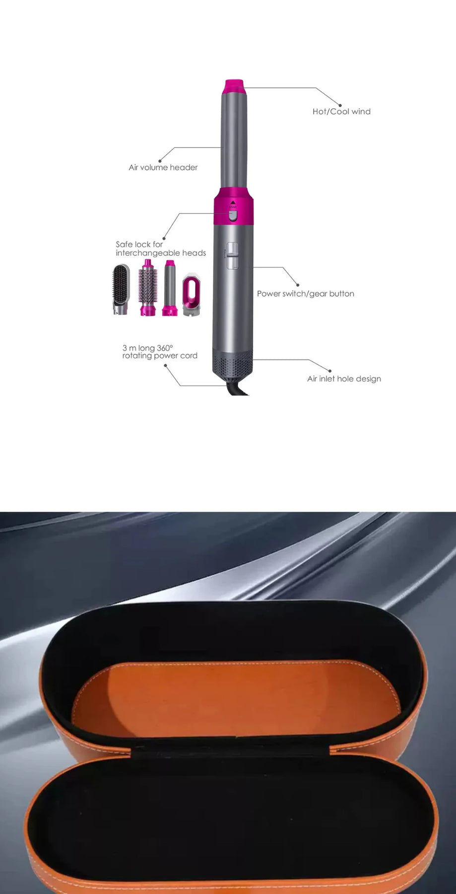 Asciugacapelli 5 In 1 Set Spazzole Capelli Pettine Ad Aria Calda Arricciacapelli -