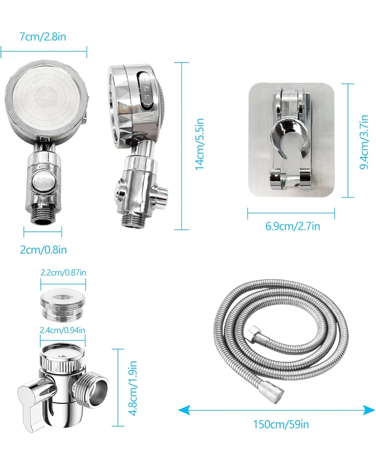 - Ha 3 modalità di spruzzo: pioggia, massaggio e spray, dotato di funzione di arresto dell'acqua con un solo pulsante, può essere azionato con una sola mano. Adatto per adulti, disabili, anziani, feriti, neonati e animali domestici.