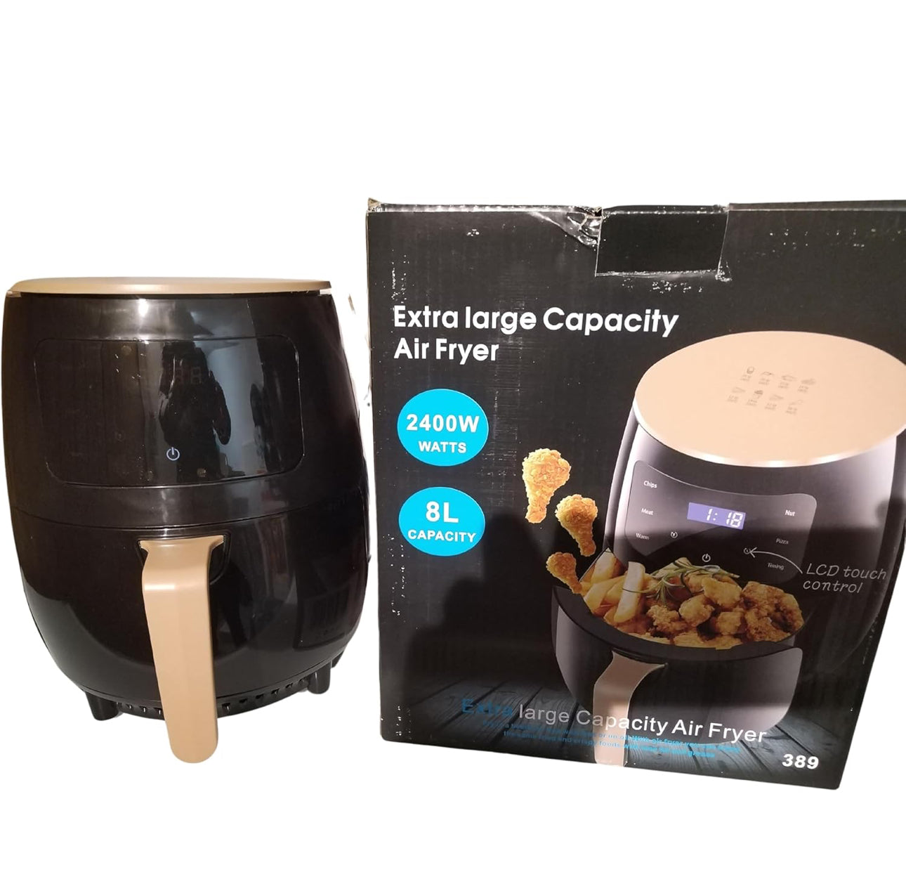 Friggitrice ad Aria XXL, 8L, 2400W, Display LCD Touch, Controllo Digitale, Nero