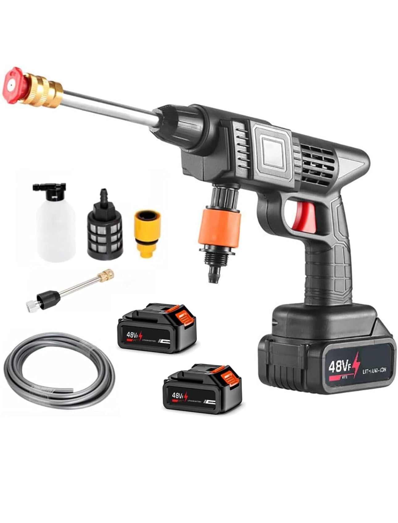 Dopastore Lancia Idropulitrice Portatile Con Due Batterie da 48V E 2 Ugelli Pistola A Pressione Con Accessori Per Pulizie Esterni Giardino Auto